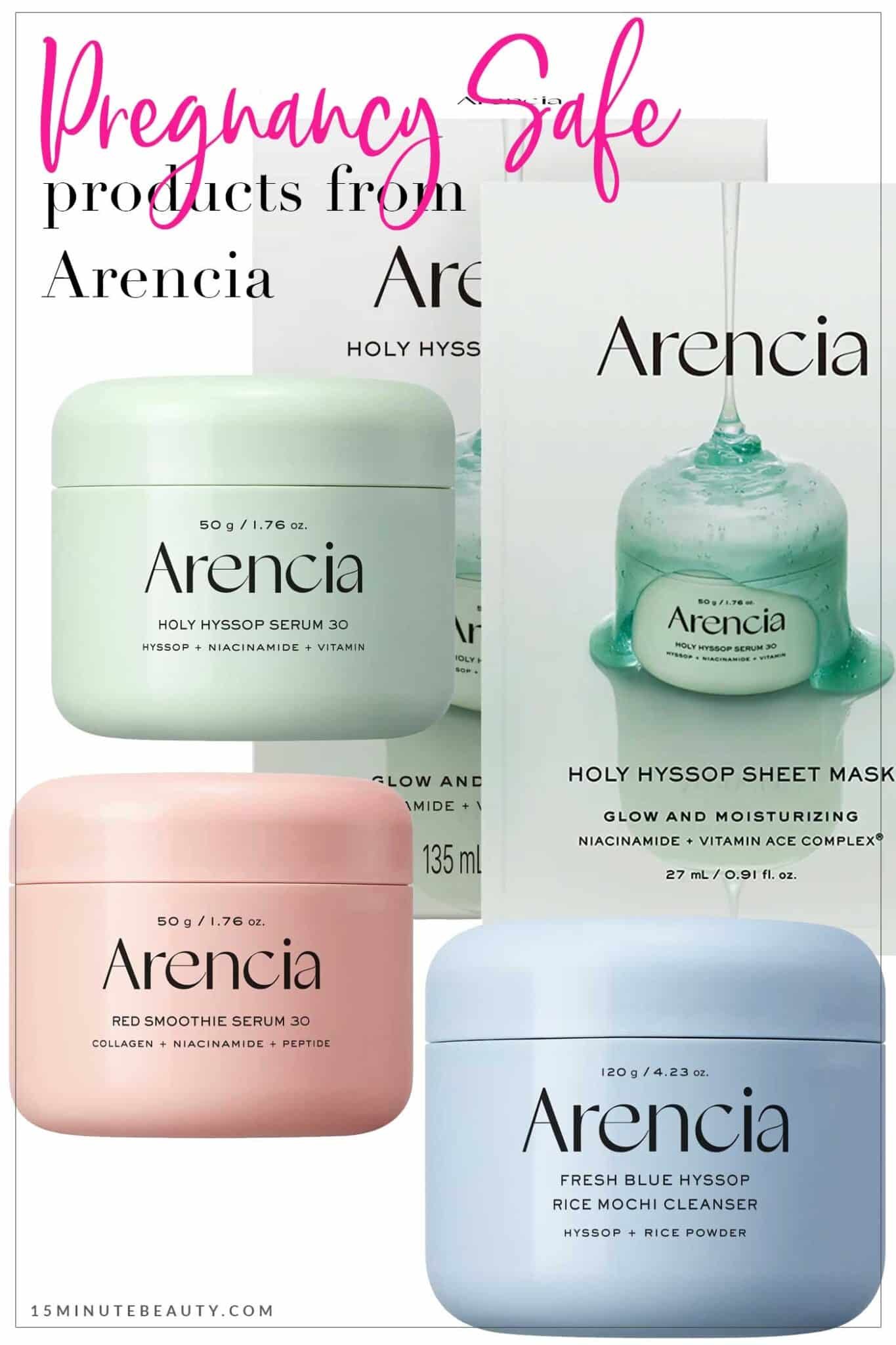 Here you’ll find pregnancy safe products from Arencia as of 4/5/2026. If it is not safe, I’ll tell you why. All of the products meet my pregnancy safe criteria. Note I will link to every product directly to avoid confusion. You’ll know exactly which product I mean.