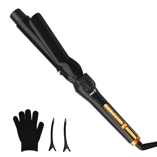 Specification: 1.25 Inch Ceramic Tourmaline Curling Wand – Dual Voltage Hair Curler for Long-Lasting Curls & Waves with 5 Heat Settings, Heat-Resistant Glove & Clips Included
