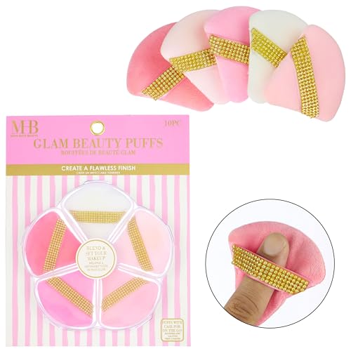 10pc Glam Beauty Puffs Collection Value Pack – Finishing Sponge Blend Set, Cosmetic Blender Finger Straps, Face Powder Application