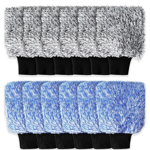 12 Pcs Microfiber Car Wash Mitts, Scratch Free Ultra Absorbent Car Sponge Glove Cleaner Wash Mitts for Car, Wheel Trucks, Home Cleaning, Machine Washable 11″L x 7.5″W (Black and White, Blue and White)