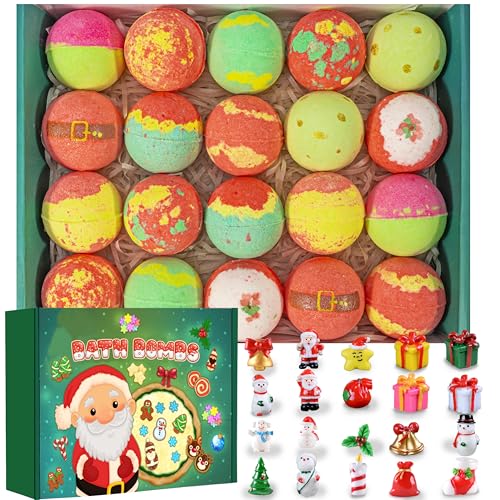 【Christmas Bath Bombs Gift Set】: 20 lovely Christmas bath bombs enriched with essential oils that create rich bubbles and release essential oil fragrances to moisturize the skin. The fragrance is lavender, rose, grape, sweet orange, rosemary and green tea.