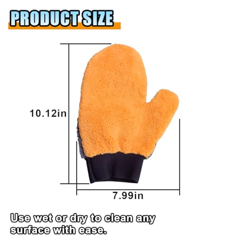 Specification: 2PCS Coral Fleece Car Wash Mitts, No Scratch Microfiber Wash Mitt Car Cleaning Glove with Thumb, Reusable Dusting Mitt with Elastic Wrist Cuff for Car Washing and Detailing (Thumb Glove)