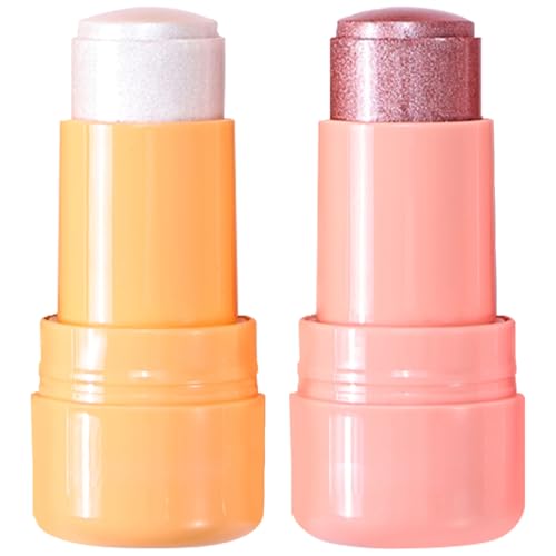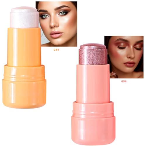 2pcs-Highlighter Stick Makeup, Shimmer Stick for Face & Body, Easy Blend & Long Lasting, Multi-Use Cream Highlighter Makeup for All Skin Types(#04+#05)