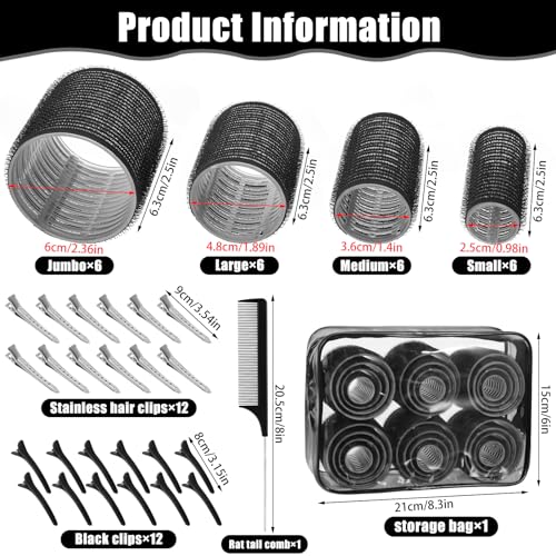 Specification: 4 Sizes Self-Grip Hair Rollers Set – 50 Pcs Jumbo Curlers for Long, Short Hair and Bangs (25mm, 36mm, 48mm, 60mm) With Clips, Black
