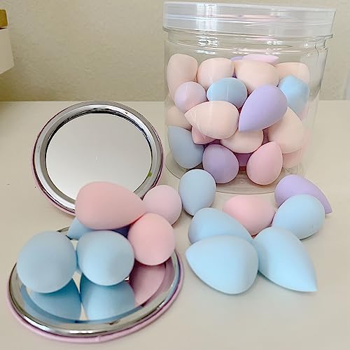 50 PCS Small Mini Makeup Sponges and Powder Puff with Makeup Mirror, Multi Colored Beauty Blender Makeup Sponge Facial Makeup Tools (Sponge egg)