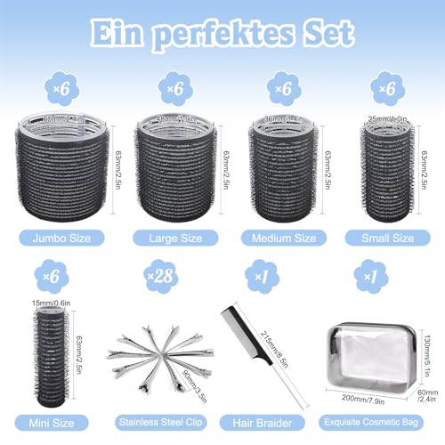 Specification: 60 PCS Hair Rollers Set, 5 Sizes(60/48/36/25/15mm) Rollers Hair Curlers with 28 Metal Clips, Hair Rollers for Women Long Medium Short Thick Hair (Black)