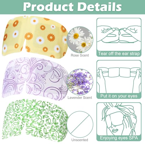 Reliable Material: these steam eye masks disposable are made of quality non woven fabric, soft, breathable and safe to use; They are designed with elastic ear straps for a snug fit; 3 Styles eye mask bulk allow you to choose your favorite ones and keep your eyes relaxed freely