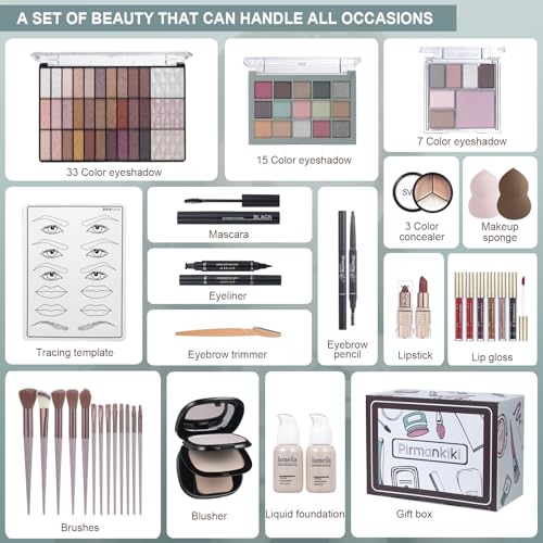 All in One Makeup Kit for Women Full Kit, Makeup Gift Set for Girls & Teen, Travel Makeup Set, Professional Makeup Kit Includes lash Clusters Kit Eyeshadow Lipstick Brow Pencil Eyeliner Brush Set