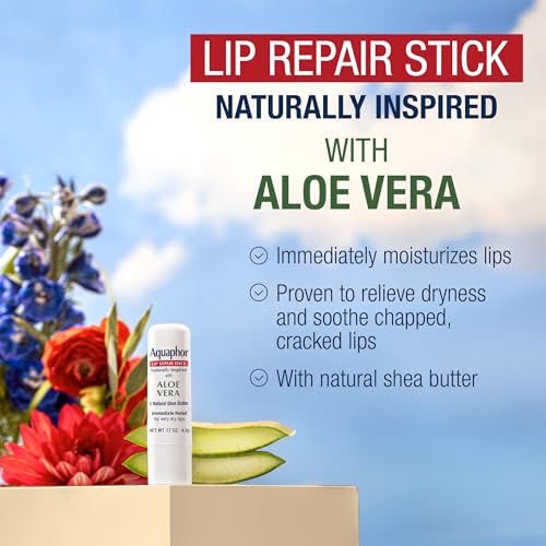 Specification: Aquaphor Naturally Inspired Lip Repair Stick with Aloe Vera and Natural Shea Butter, Hydrating Lip Balm Immediately Relieves Dryness and Soothes Chapped Lips, 0.17 Oz Stick, Pack of 3