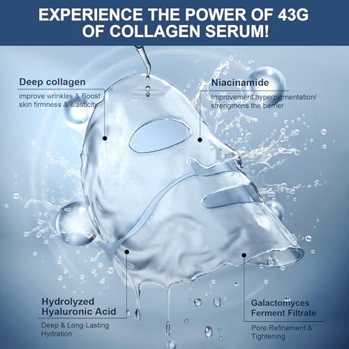 Specification: AVJONE Collagen Face Mask for moisturizing and Glass Skin, hydrating Overnight Face Mask for All Skin Types Pore Minimizing,Elasticity Enhancing,Firming – 43g×4ea