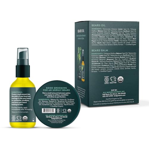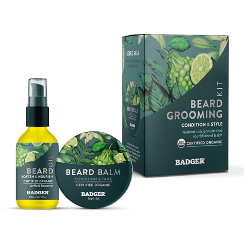 Specification: Badger Beard Grooming Kit, Organic Beard Oil Bottle + Organic Beard Balm Tin, Subtle Masculine Scent, Organic Mens Beard Care for Healthy Beard Growth, 2-Pack