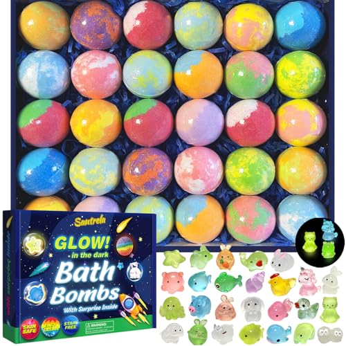 Bath Bombs for Kids with Surprise Inside, 30 Pack Kids Bath Bombs with Toys Glow in The Dark, Child-Safe Colorful Bubble Fizz Bath Ball Gift Set for Easter Egg, Birthday,Christmas