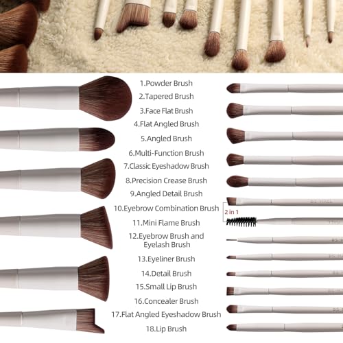 BS-MALL Professional Makeup Brush Set 18 Pcs Premium Synthetic Foundation Powder Concealers Eye Shadows Blush Makeup Brushes with Travel Case (Matte white beige)