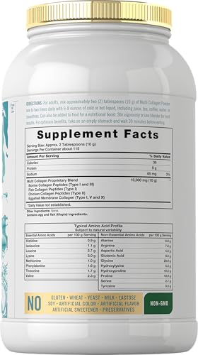 Specification: Carlyle Multi Collagen Peptides Powder 40 oz | 10000 mg | Type I, II, III, V, X | Supplement Blend with Protein | Multi Food Sourced | Non-GMO, Gluten Free