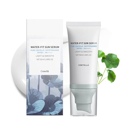 Centella Sunscreen,Centella SPF50 Water-Fit Sun Serum Light & Smooth Hyalu Cica Sunscreen