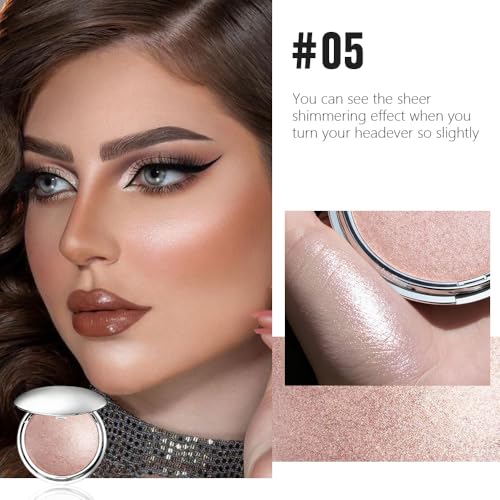Champagne Glow Shimmer Face Highlighter Makeup, Soft Pink Contour Powder Leaving a Lightweight & Healthy Radiance, Long Lasting Luminous Face Body Highlighter Makeup (#05)