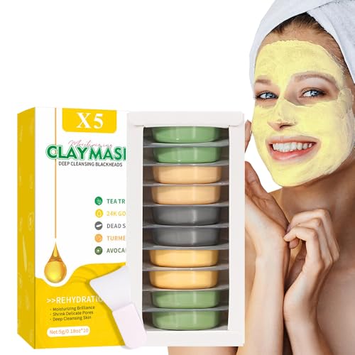 Specification: Clay Mask Set 10 Pods – 24K Gold, Avocado, Dead Sea, Turmeric, Tea Tree | Deep Cleansing, Blackhead Removal, Exfoliating, Hydrating | For All Skin Types