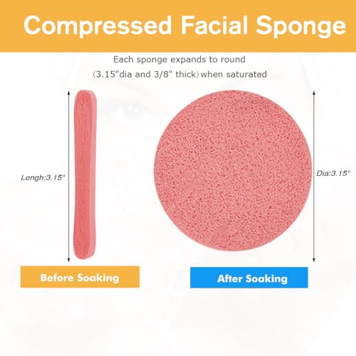 Specification: Compressed Facial Sponge,Reusable Makeup Blender 60 Count,Soft Round Wash Sponges for Estheticians Makeup Removal,Face Cleansing Exfoliating Compress Spa Pads for Women,Coral Pink