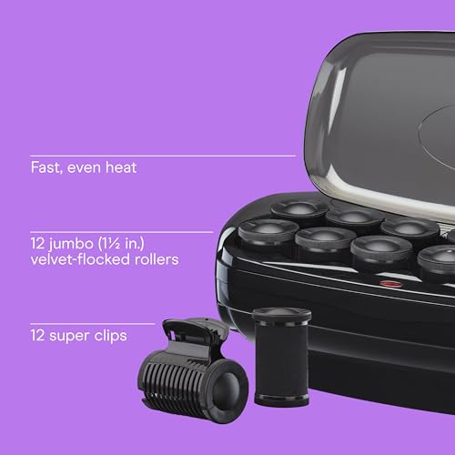 Conair Hot Rollers for Long, Medium & Short Hair, 12 Jumbo 1 ½” Heated Hair Rollers with Clips, Hot Curlers for Women, Volume & Curls, Amazon Exclusive, Black