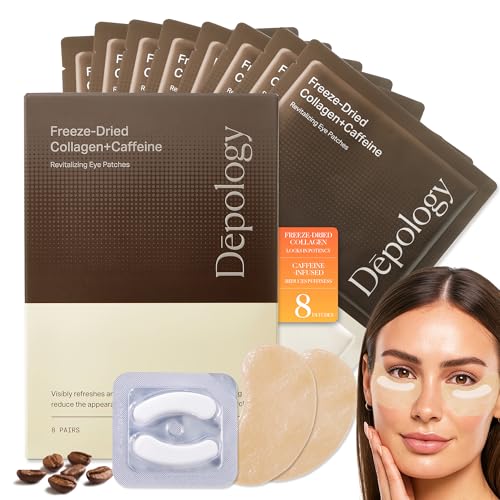 Specification: depology Caffeine Under Eye Patches + Freeze-Dried Collagen Under Eye Mask, Awakening Eye Patches for Puffy Eyes and Dark Circles& Fine Lines, 8 Pairs | 2‑Step Hydrating & Smoothing & Reviving