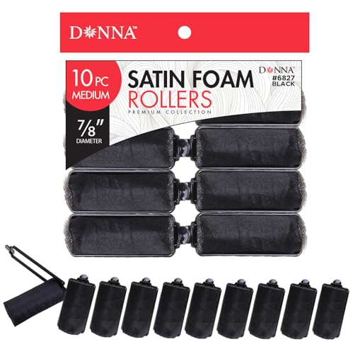 Specification: DONNA Silky Sastin Foam Roller 7/8″(D) MEDIUM 10PCS Hair Curlers with Clips for Heatless Hairdressing and Styling – BLACK