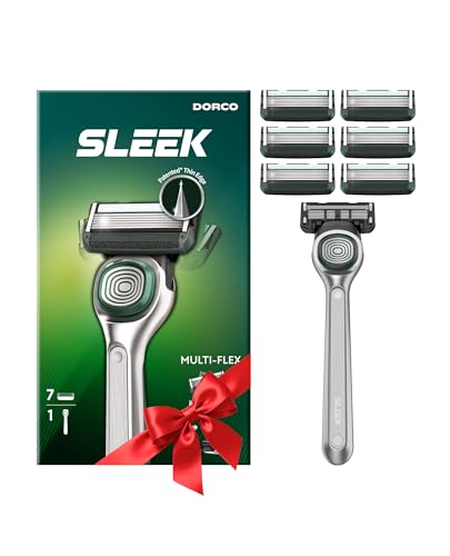 DORCO SLEEK 6 Blade Razor for Men with 7 Cartridges | Men’s Cartridge Razors with Razor Handle and Smooth Shaving Blades | Men’s Razors with Multi-Flex Technology