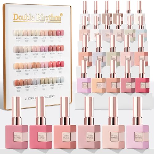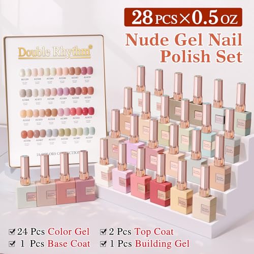Double Rhythm 28Pcs 0.5Oz Gel Nail Polish Set Same Color Same Bottle Soak Off Gel Polish Kit Nail Art Manicure Salon DIY at Home for Women (Nude Pink Collection-T24-3)