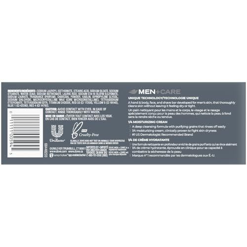 Specification: Dove Men+Care Body + Face Bar 2-Pack (12 Bars) – Exfoliating 3-in-1 Charcoal Soap with Clay for Skin Care, Hands & Shaving, 3.75 Oz Ea
