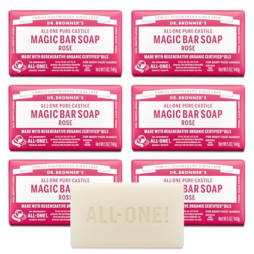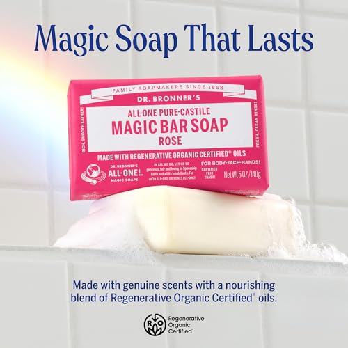 Specification: Dr. Bronner’s Pure-Castile Magic Soap Bars (Rose, 5 oz, 6-Pack)- Made with Regenerative Organic Certified Oils- For Face, Body & Hair – Gentle, Vegan- Bar Soaps for Men & Women