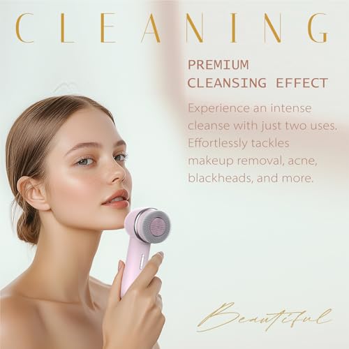 Specification: Electric Facial Cleansing Brush with Dual-Rotating Silicone and Bristle Brushheads,Electric Silicone Face Scrubber Exfoliator,Face Cleansing Brush, Rechargeable, for Face Skin Issues,Pink