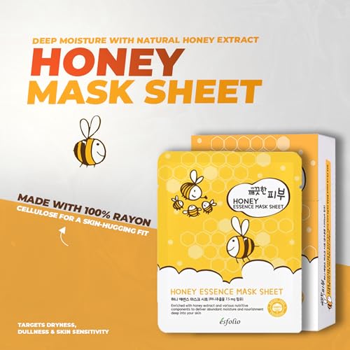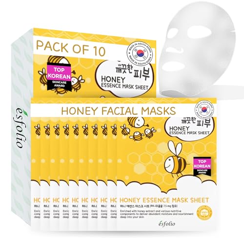 Specification: esfolio Honey Essence Face Mask – Hydrating & Nourishing Sheet Mask for Dry, Dull, Sensitive Skin – Moisturizing Face Treatment with Natural Honey Extract (Pack of 10)