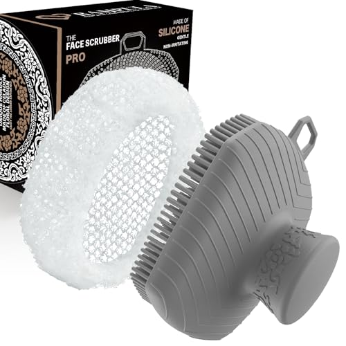 RamPula Face Scrubber & African Net, Silicone Exfoliating Brush for Men, Facial Cleansing Brush, Manual Waterproof Cleansing Skin Care, Blackhead Removing Pore Cleansing Massaging Face Brushes – Grey