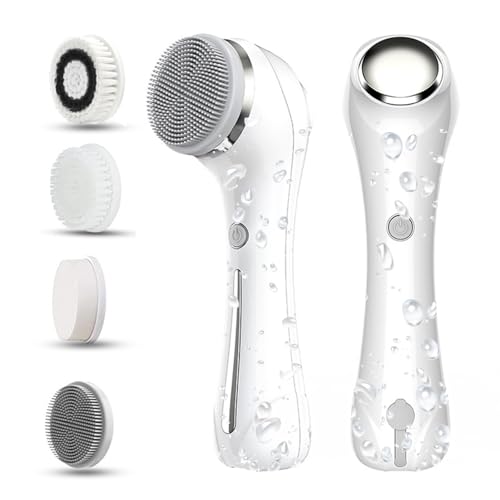 【A PERFECT ALL-IN-ONE FACIAL CARE SYSTEM】A waterproof facial cleansing brush with 4 different face brush heads give you the 360 degree deep cleansing, experience exfoliation more better for visibly brighter, more even skin tone. Suitable for all skin types, even for sensitive skin