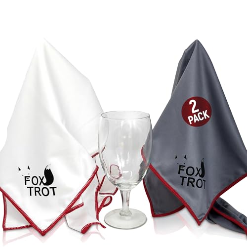 Specification: Fox Trot Large Microfiber Polishing Cloths (2 Pack White | Gray) | Streak Free, Lint Free Shine and Clarity for Wine Glasses, Stemware and More