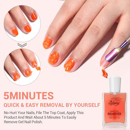 Specification: Gel Nail Polish Remover, 2 Pack × 15ml acetone-free Formula Remove Gel Polish for Nails, Quick & Easy Remove in 3-5 Minutes, NO Need Soaking or Foil Wrapping for Nails