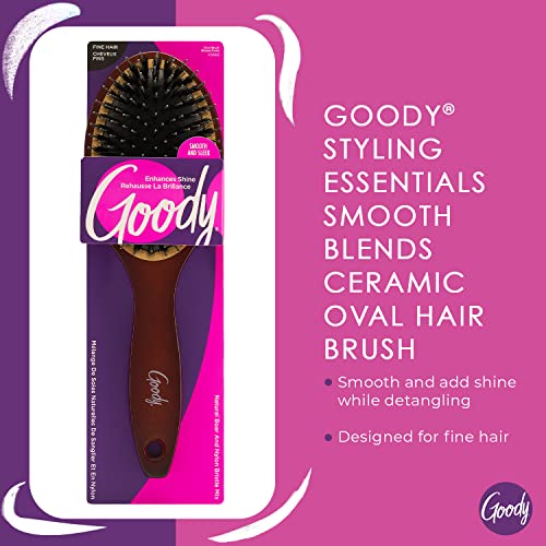 Goody Ceramic Hair Brush, Oval Cushion – Natural Boar and Nylon Bristle Mix to Enhance Shine & Smooth Hair, Fights Frizz and Static – Premium Wood Design is Pain-Free for All Hair Types