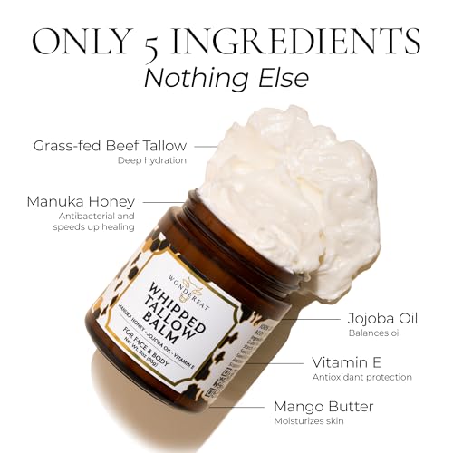 Specification: Grass-Fed Whipped Tallow Balm – Face & Body Moisturizer with Manuka Honey – Lightweight, Fast-Absorbing Hydration for Dry, Sensitive Skin – Unscented, Clean Formula – 3 oz
