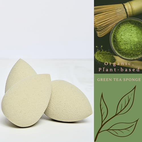 Green Tea Beauty Sponge – Plant-Based, Eco-Friendly, Cruelty-Free, Dye-Free & Latex-Free Blender, Biodegradable & Vegan Makeup Sponge, Makeup Blender, Perfect for Liquid & Powder (3 count)