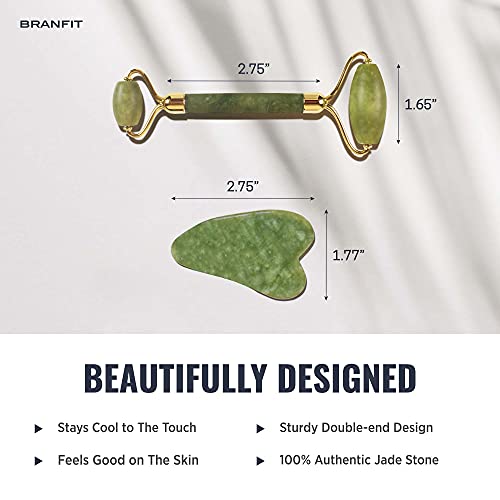 Gua Sha Massage Tool Jade Roller Skin Care Kit by Branfit, 100% Natural Jade Roller Beauty Product for Anti-Aging & Anti-Wrinkle Treatment, Massager Wand for Neck and Puffy Eye Area