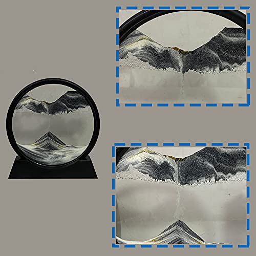 Specification: HYUGF Moving Sand Art Picture Decor, 3D Deep Sea Sandscape Liquid Motion, Round Glass Frame Display Flowing Sand Relaxing Gift for Kids Adults Home Office Work Desktop Decoration Toy (Black, 7″)