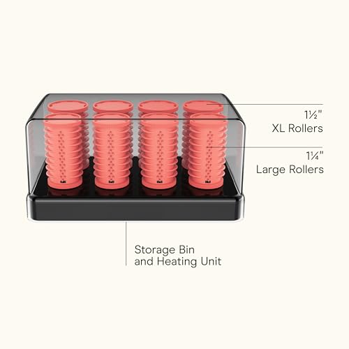 SET YOUR CURL: Hot curler set includes 8 plastic rollers of 2 sizes for custom curls and waves. 4 extra-large rollers (1½”) and 4 large rollers (1¼”) with starter grips to prevent hair from sliding. Includes 8 super clips to keep rollers in place.