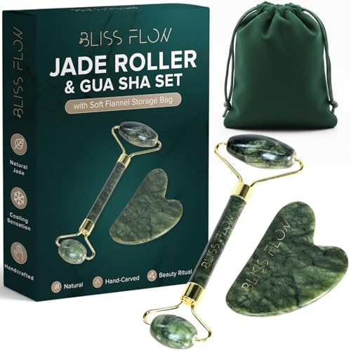 Unveil your natural glow with the BlissFlowJade Roller & Gua Sha Set, your must-have duo for radiant, youthful skin. Handcrafted from 100% natural jade, these tools help reduce puffiness, relieve tension, and enhance skincare absorption for a refreshed, lifted look. The jade roller boosts circulation and calms the skin, while the gua sha stone contours facial curves and promotes lymphatic drainage. Together, they deliver a soothing, cooling massage that relaxes muscles and brings out your skin’s natural luminosity. Packaged in an elegant box with a velvet storage pouch, it’s the perfect self-care essential or thoughtful gift for glowing, revitalized skin naturally.