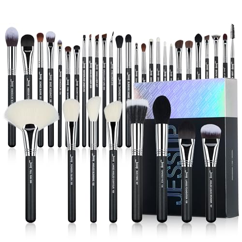 Specification: Jessup Makeup Brushes Set Professional 35pcs Premium Synthetic Labeled Make up Brush for Foundation Eyeshadow Concealer Contour Eyeliner Blush Powder and Eyebrow, Cruelty-Free, Black T342