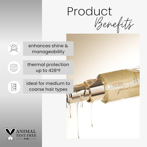 Kenra Professional Platinum Luxe Shine Oil | Gold Enriched Nourishing Elixir |Enhances Shine & Manageability | Thermal Protection Up To 450F | Medium To Coarse Hair