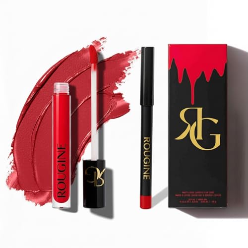 💄 𝟮 𝗜𝗡 𝟭 𝗟𝗜𝗣𝗦𝗧𝗜𝗖𝗞 + 𝗟𝗜𝗣 𝗟𝗜𝗡𝗘𝗥: This ROUGINE 2-in-1 set pairs rich Red Love liquid lipstick with a smooth lip liner for crisp shaping and an effortless sculpted pout. The precise tip outlines evenly while the creamy formula glides without tugging ideal for matte lipstick for women, and clean everyday definition.