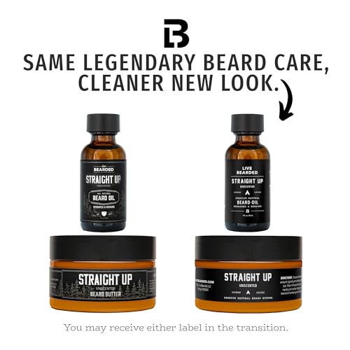 Live Bearded Beard Oil and Butter Grooming Kit – Made in the USA – All-Natural Ingredients with Shea, Argan, Jojoba – Growth Support | Straight Up Unscented – Fragrance-Free