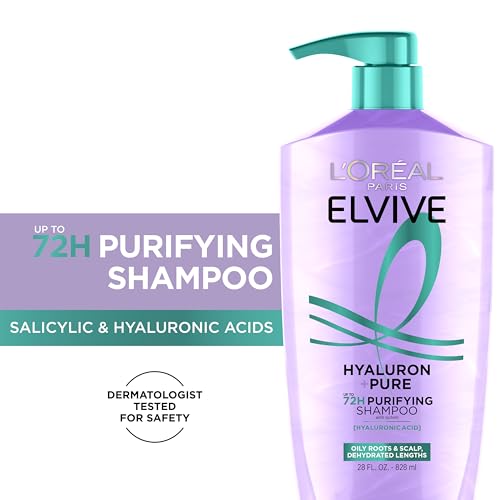 L’Oreal Paris Elvive Hyaluron + Pure 72H Purifying Shampoo for Oily Hair, Clarifying Shampoo with Salicylic Acid and Hyaluronic Acid, 28 Fl Oz