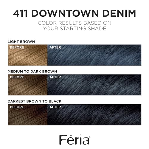 L’Oreal Paris Feria Multi-Faceted Shimmering Permanent Hair Color, 411 Downtown Denim, Pack of 1 Hair Dye Kit