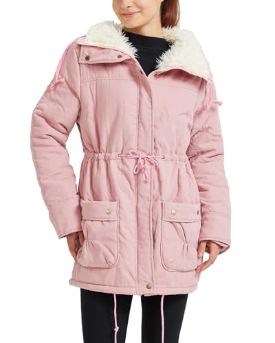 MEWOW Women’s Winter Mid Length Thick Warm Faux Lamb Wool Lined Jacket Coat (Armygreen Hood Type, Small)