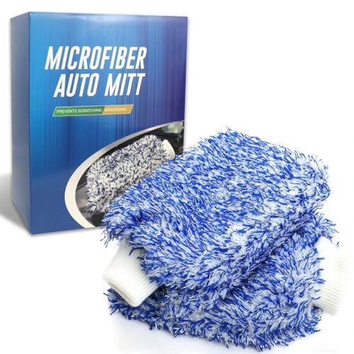 Specification: Microfiber Car Wash Mitt, Car Sponge Wrapped in Soft, Plush Fiber Cloth Material, Holds Tons of Sudsy Water for Effective Washing, Lint Free, Scratch Free, for Cars, Motorcycles (Blue 2 pack)